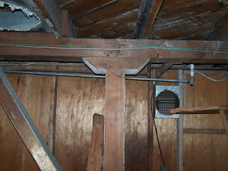 In this picture below, is one of the support beams holding up the main support for the house. When we bought the house, we didn't think much of it, mainly because we really couldn't see around the furnance. Well, we were looking at everything, and we noticed that the main support beam has a big crack in it. That could be a problem. Well the plan is, that Brian and Chuck are going to try and replace the main support, so we can actually finish the basement. I'm a little scared, but it should all be good.